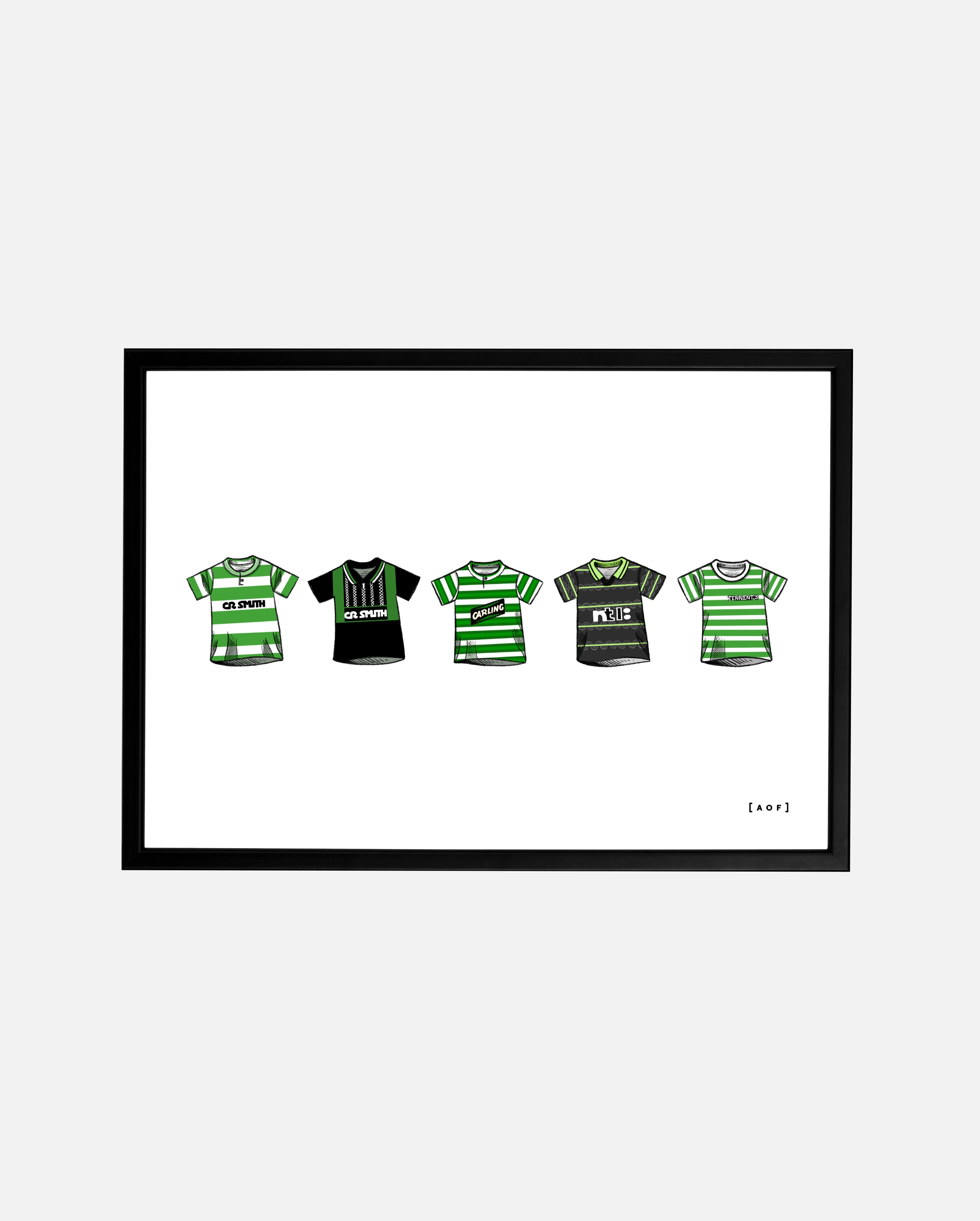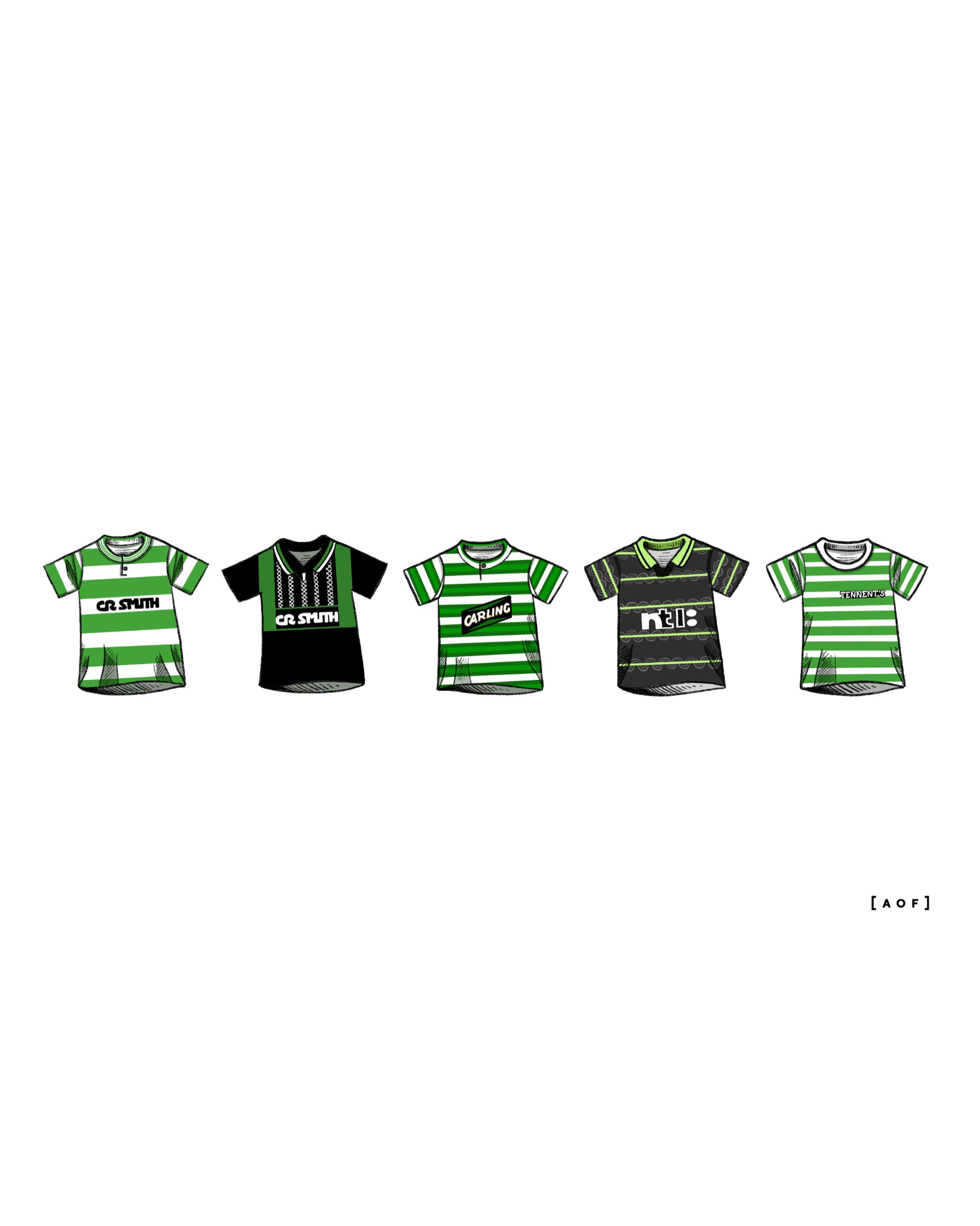 - Design: A collection of classic Celtic football shirts as suggested by Hoops fans.