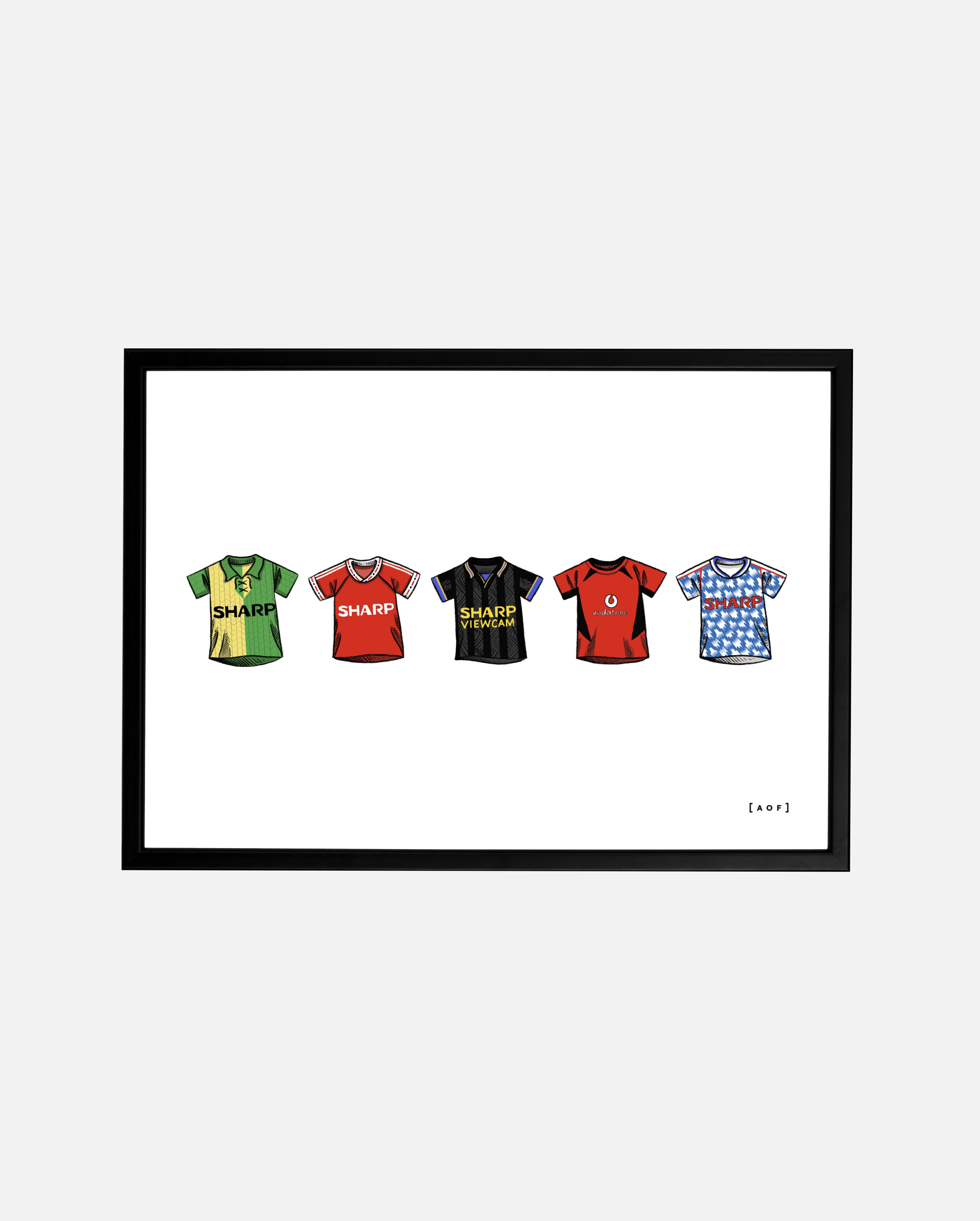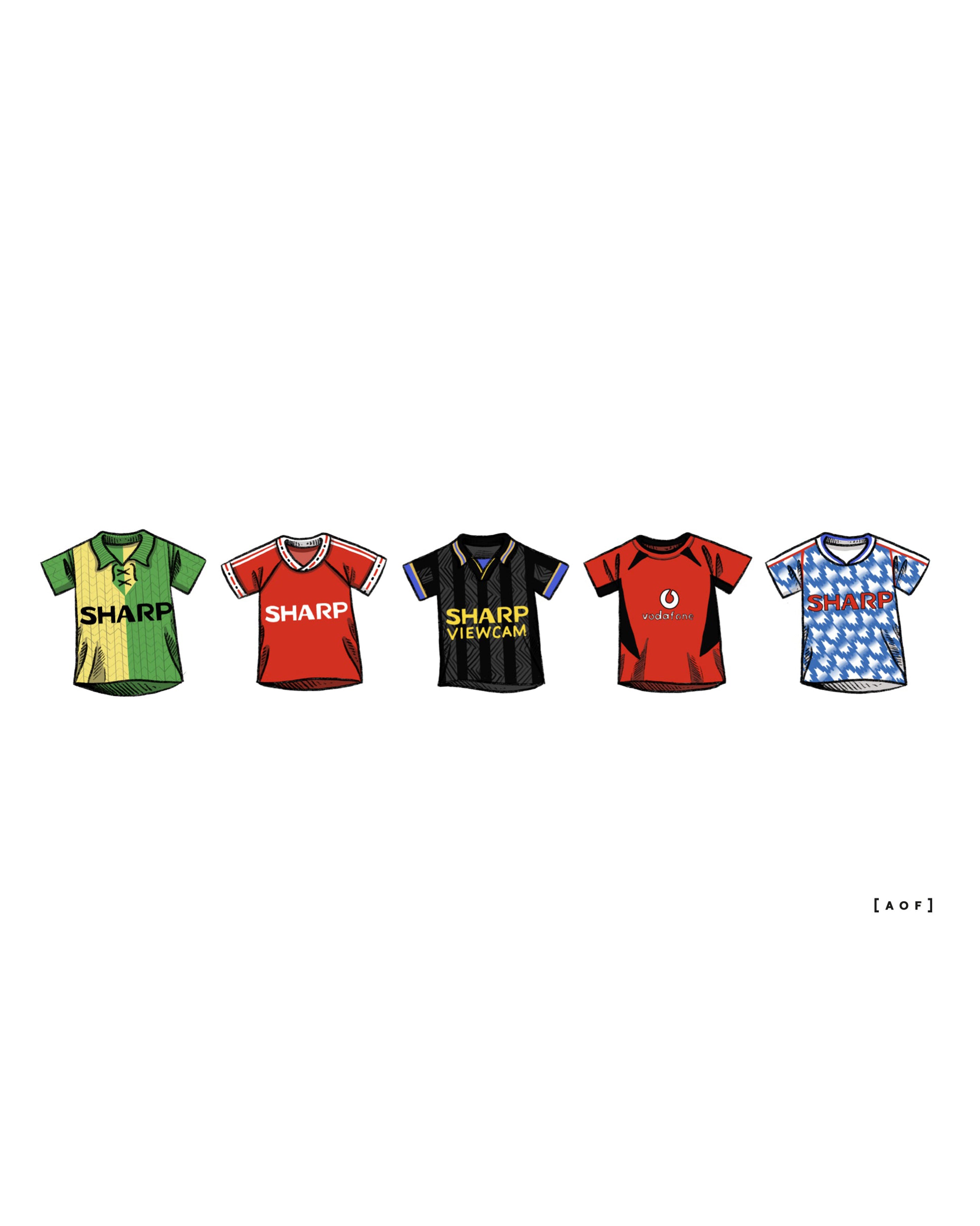 - Design: A collection of classic Man Utd football shirts as suggested by fans.