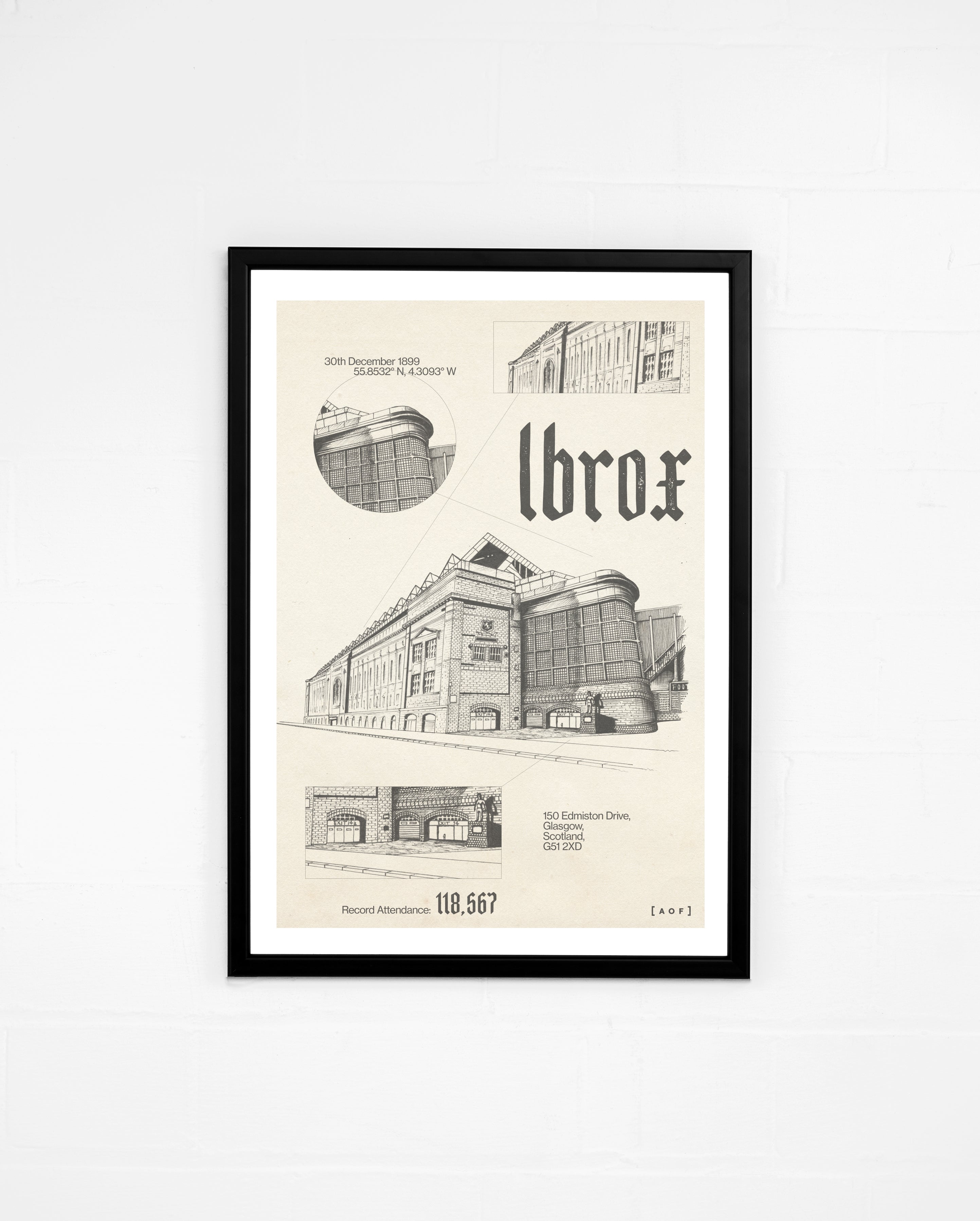- Framed versions use a black wood frame made in the UK.